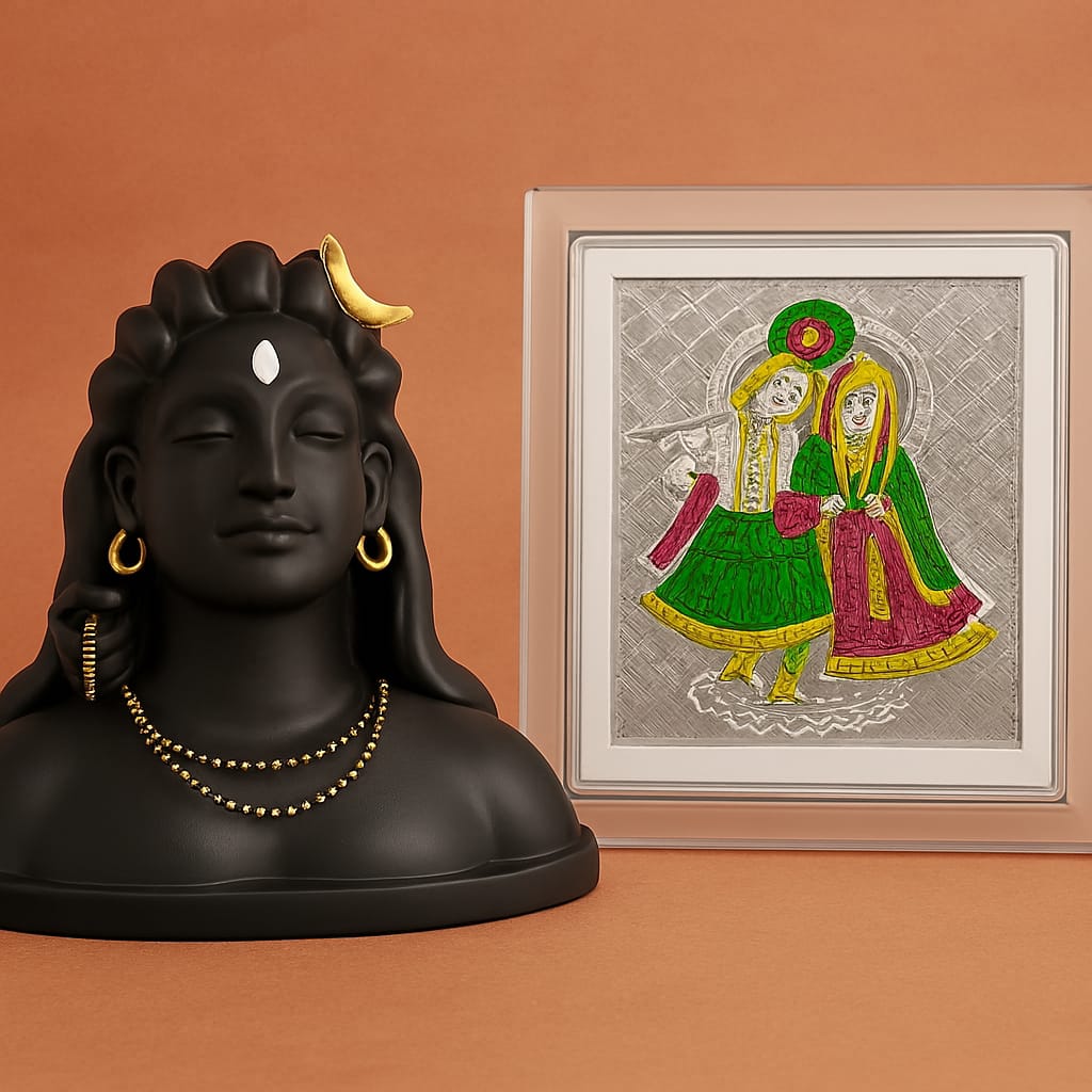 Trendy Combo pack of Adiyogi GROCERY | Combo pack of Adiyogi Car deck idol with silver radha krishna